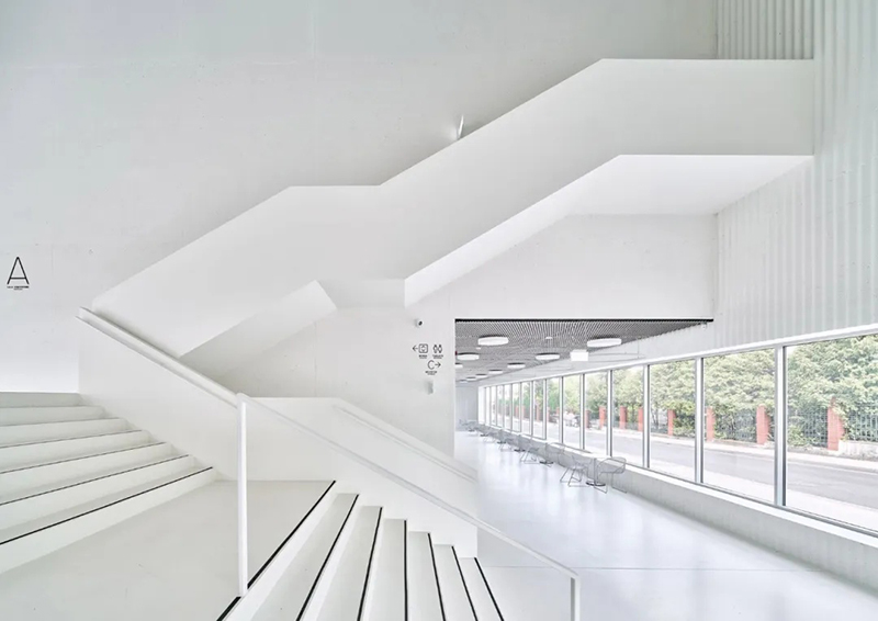 建筑師的城市設(shè)計(jì)策略側(cè)重于將音樂(lè)廳、前廳、學(xué)校和周圍公共空間融合在一起。新建筑重新組織了現(xiàn)有場(chǎng)地,使其具有連貫性和多功能性。它直接毗鄰人行道,沒有綠植緩沖帶,凸顯了其城市存在感,同時(shí)最大限度地利用了有限的土地面積。