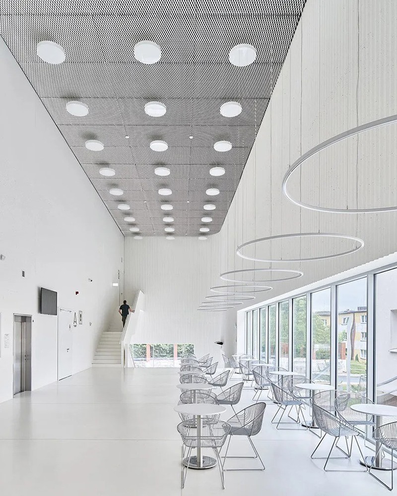 SLAS Architekci 設(shè)計(jì)的音樂(lè)廳是一個(gè)多功能空間,既支持學(xué)校的各類教育活動(dòng),也包含了亞斯特?zé)岵冀?茲德羅伊廣泛多樣的文化活動(dòng)。音樂(lè)廳擁有量身定制的自然聲學(xué)效果,能夠增強(qiáng)音樂(lè)表演,為學(xué)生提供排練和演出的最佳環(huán)境。除了教育功能外,該場(chǎng)地還舉辦了數(shù)百場(chǎng)音樂(lè)會(huì)和城市活動(dòng),成為該地區(qū)重要的文化中心。該設(shè)施還包括一個(gè)咖啡館和一個(gè)前廳,前廳兼作藝術(shù)畫廊,展示當(dāng)?shù)厮囆g(shù)家的作品,而建筑前的廣場(chǎng)則是居民公共聚會(huì)的場(chǎng)所。